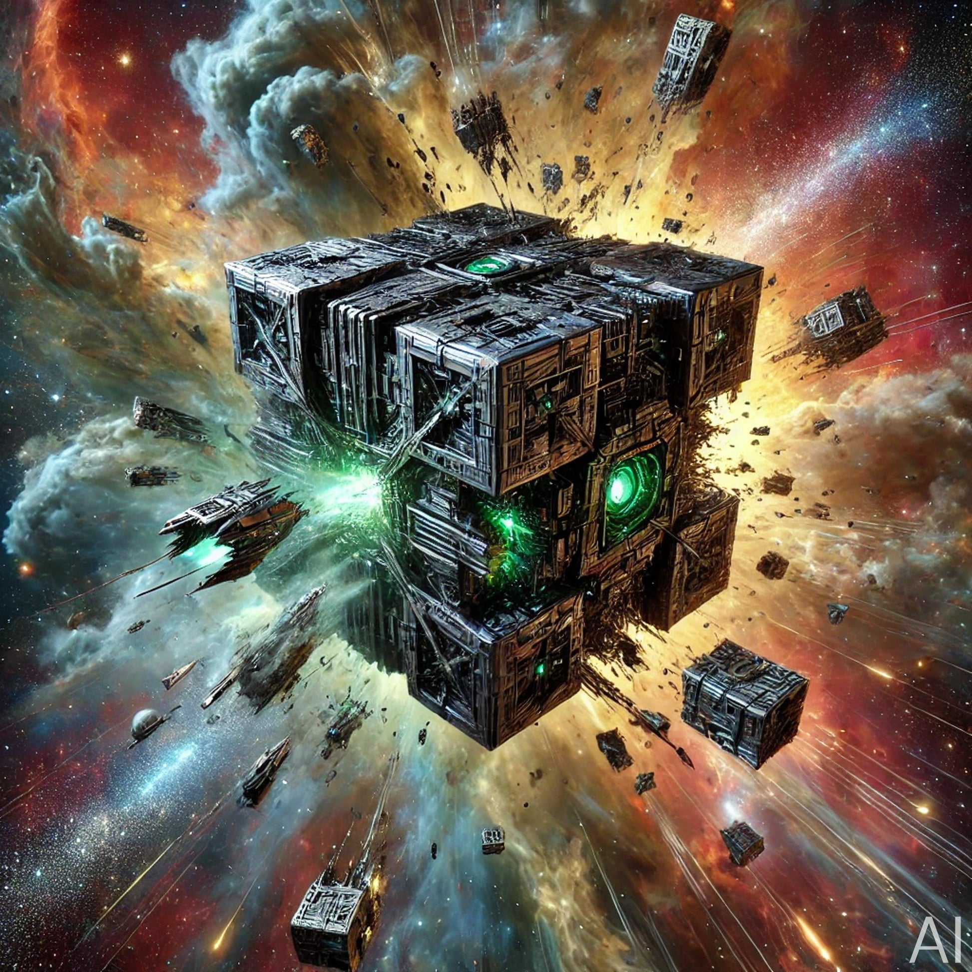 Rubik's Borg Cube – USB + Digital Tech Fractal Art (5 Sci-Fi JPG Prints)